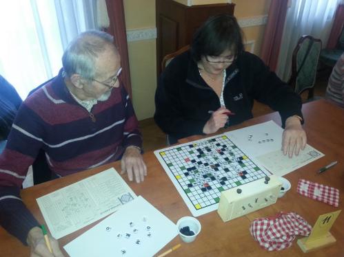 No, šalo na stran. Tomaževi nasprotniki tokrat niso imeli pravega orožja. Če niso bile posredi njegove udarne dolge besede, je uporabil premišljeno in potrpežljivo taktiko, ki se je na koncu vselej obrestovala. Z dvema točkama zaostanka so mu na koncu sledili trije: Božo, Grega in Peter. Vzrok debele razlike je bil tudi v kančku njihovega medsebojnega premagovanja. Najboljši položaj med izenačeno trojico je pripadel Božu, do njega pa ga je popeljal dober finiš. Čeprav je slednjega končal s porazom proti Petru, pa je bil nasprotnik za končno razvrščanje povsem po meri. Resnici na ljubo je bila Petrova zmaga proti Božu pravzaprav »nuja«, če se je seveda želel izogniti (zgolj) sredini domžalske razvrstitve. Marica in Oskar sta medsebojno remizirala, a hkrati igrala dovolj prodorno, da sta se na koncu družno uvrstila na peto mesto. Zanimivo je, da sta od »prvokategornikov« oba podkurila Škvorcu. Tudi Marjanu je pripadla delitev mesta. Deveto je podelil s Hrovatom. Več kot polovico možnih točk so si priigrali še Drago, Janez, Deja in Julijana. Pod pričakovano normo pa sta zagotovo pristala Marjan (Mrvar) in Marinka, ki je zaključila niz prejemnikov januarskih točk. Se pa je med njiju uvrstil debitant Bojan Kos iz Radencev. Znano je, da je pred tem odigral eno dopisno partijo in se še pred njo prijavil na dopisni turnir. Več kot očitno je, da je dobro naštudiral tudi taktiko in tako pripravljen sprejel prvi možen izziv sodelovanja v živo. Na stavnicah bi kotiral nekje okrog na koncu osvojenega mesta. Ne nižje. Oskarjev komentar, da morajo novinci več let čakati do partije z državnim prvakom ni iz trte zvita. Bojan je ta urok preklical že v Domžalah. Druga debitantka, Vesna Pesek, je vendarle delila usodo običajnih novincev in je pristala na repu, čeprav ne povsem na zadnjem mestu, in že to je uspeh. Sicer pa je bil rep uvrstitve povsem štajerski, v njem pa se je presenetljivo znašla tudi izkušena Silva. Igralci so sestavili 41 najdaljših besed.