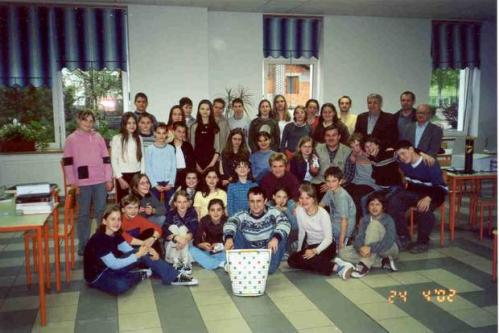 Seveda so bila pravila igre prilagojena: v petnajstih minutah je bilo potrebno sestaviti šest besed, nagradna polja na plošči pa niso štela. Zmaga ekipe je prinašala dve točki, dodatno pa je bila nagrajena že devetčrkovna beseda (+10 točk). Pričakovanja, da bodo favoriti ekipe z učenci iz višjih razredov so se uresničila. Na koncu je prepričljivo slavila OŠ Malečnik (12 točk, mentor Oskar Neuvirt), ki je ostala nepremagana. Drugo mesto je osvojila OŠ Antona Ingoliča s Sp. Polskava, ki bi se brez spodrsljaja v zadnjem krogu proti najmlajši ekipi turnirja lahko povsem približala vodilni ekipi (10 točk, mentorica Mateja Kumrič). V izenačenem boju je tretje mesto pripadlo starejši ekipi OŠ Poljčane (8 točk, mentor Peter Skrbiš) pred OŠ Pod goro "b" Slov. Konjice (8 točk, mentorica B. Skrbiš). Sledile so: OŠ Loče (6 točk, mentorica Duška Pokorn), OŠ Velika Nedelja (5 točk, mentor Marjan Škvorc), OŠ Pod goro "a" Slov. Konjice (mentorica Bernarda Skrbiš) in mlajšo ekipo OŠ Poljčane (2 točki, mentor Peter Skrbiš). Žal se zaradi šolskega izleta tekmovanja ni mogla udeležiti ekipa OŠ Laporje. Turnir je izredno lepo uspel. Potekal je v čudovitem vzdušju, s pravšnjo mero tekmovalnosti in na presenetljivem nivoju igranja. Igralni komplet križemkražema sta za nagrado prejela Nuša Žnuderl (za vseh 7 zmag) in Gregor Harb (za nominalno najvrednejšo devetico - besedo iz devetih črk), oba člana ekipe OŠ Malečnik. Prve tri ekipe so prejele še lepe knjižne nagrade. Nagrade je prispeval tudi Salomon d.o.o. iz Ljubljane, tekmovanje pa je finančno podprla občina Slov. Bistrica. Turnir je vodil in sodil ugledni slovenski ugankar Pavle Gregorc. Tekmovanje bo društvo organiziralo tudi v šolskem letu 2002/2003.