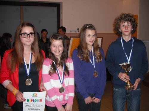 Zmagovalna ekipa OŠ Poljčane (od leve: Nika Petelinšek, Mojca Mesarič, Maja Purg in Alen Barbirič).